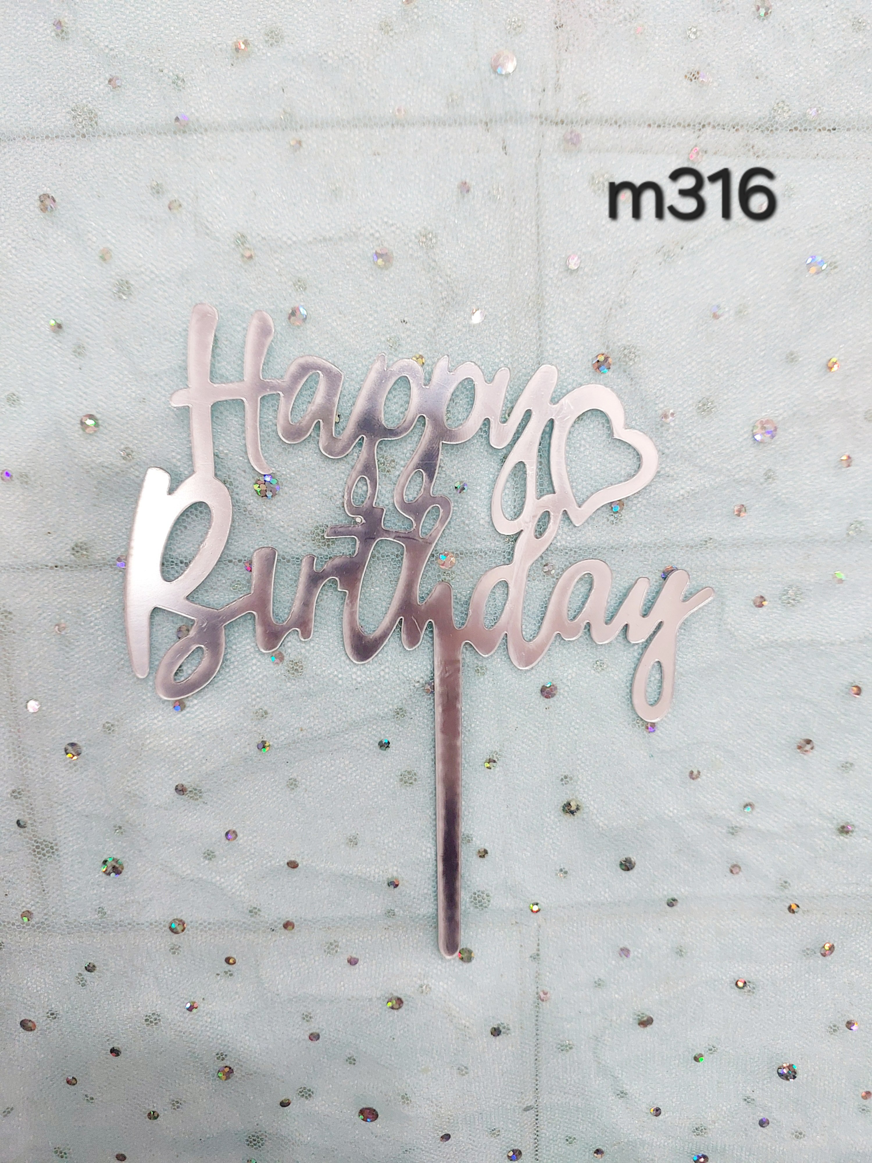 Mika chữ hpbd bạc tim (set 10 cái)